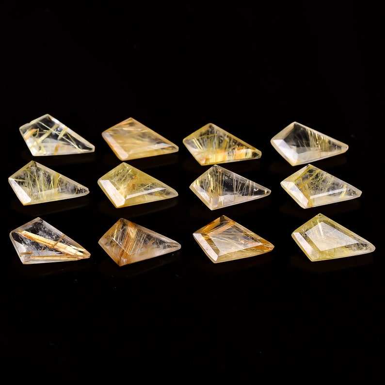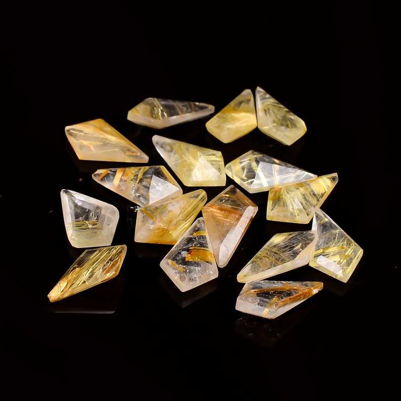 Hermosas piedras preciosas de cabujón sueltas de Cuarzo rutilado dorado genuino con forma de cometa para hacer joyas a precios mayoristas