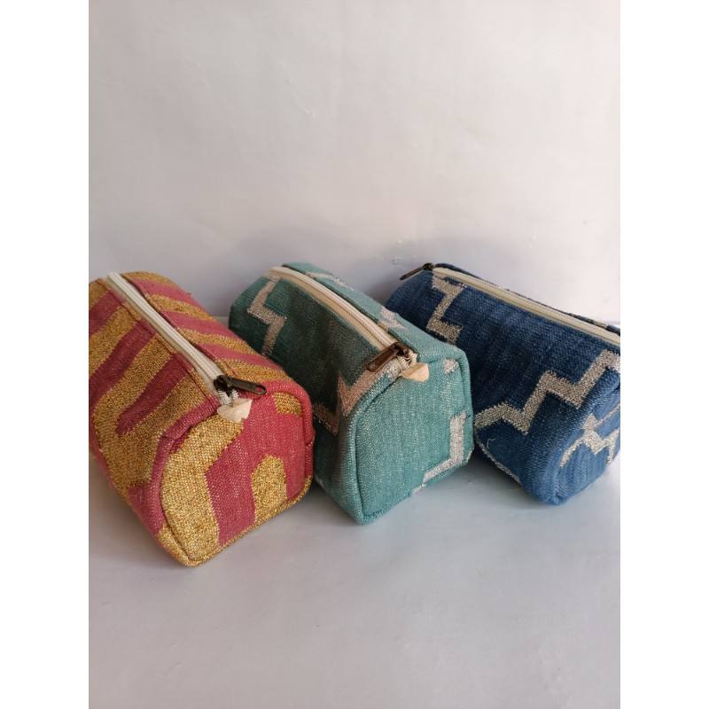 Nombre:Cosméticos geométricos bolsa de conveniencia Dhurrie cosméticos bolsas