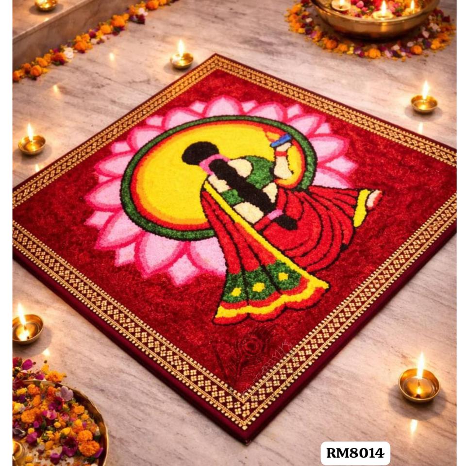Hermosa Alfombra Rangoli con Diseño de Encaje, Lavable, Decoración para Piso, 3 Pies, Decoración Festiva para el Hogar, Elección de las Mujeres