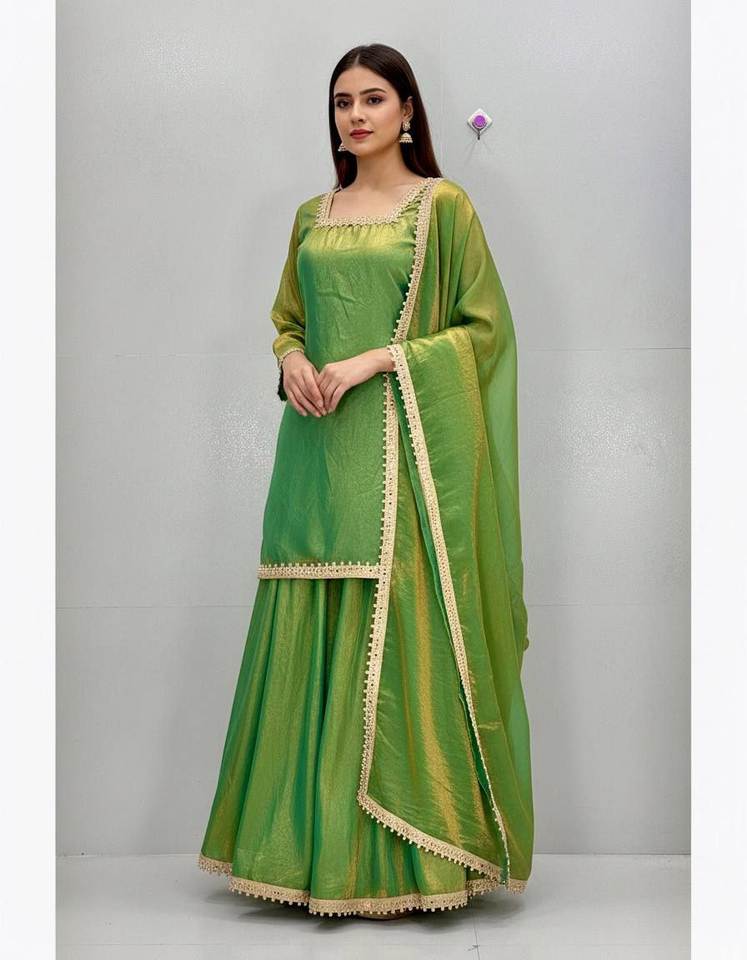 Product Name:Fendy Silk Embroidery Coding Work Top & Palazzo With Dupatta