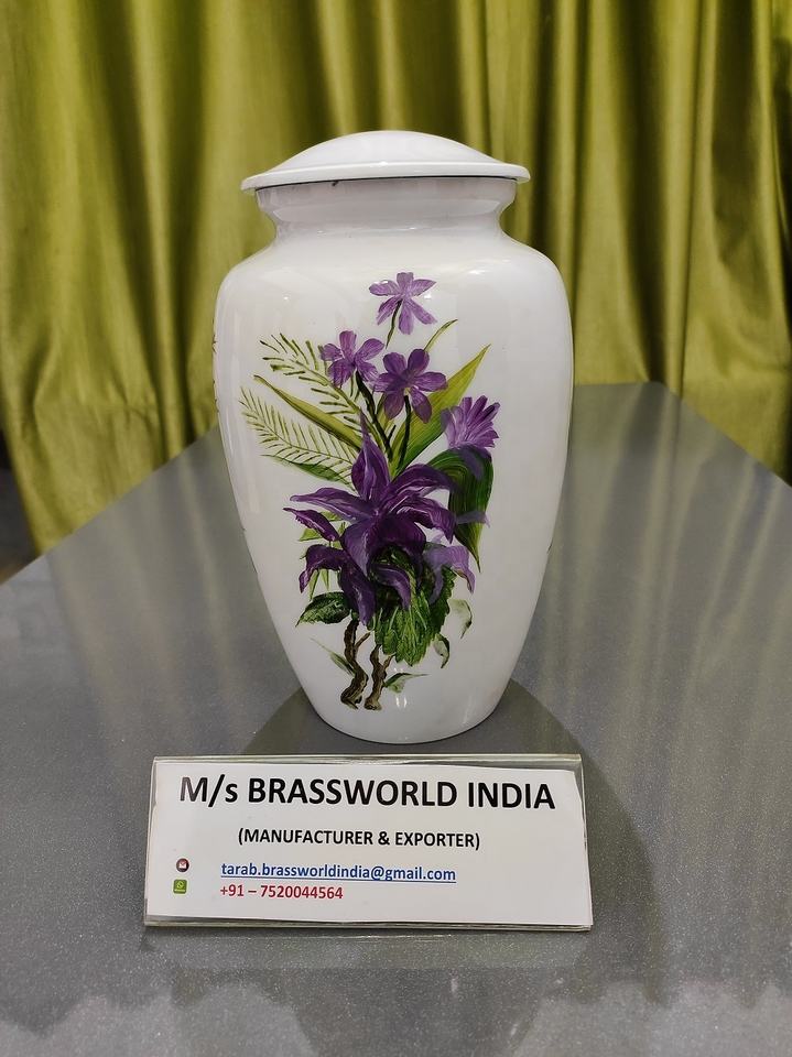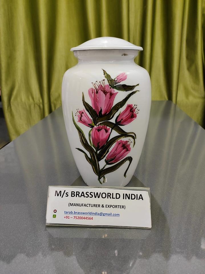 Urna Funeraria para Adultos Pintada a Mano con Hermosas Flores, Estilo Americano, Modelo BRU-4500, BRASSWORLD INDIA