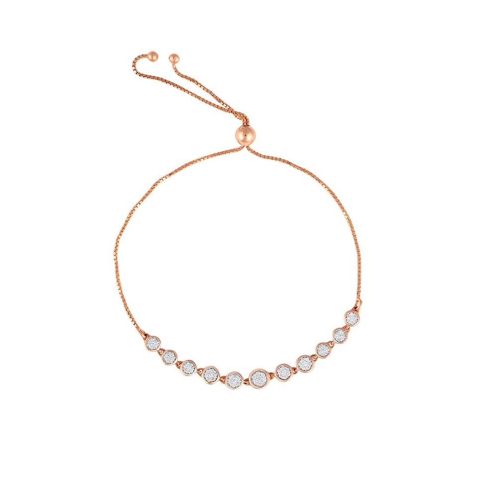 Hermosa Pulsera de Diamantes con Diseño Geométrico, Ajustable, en Oro Rosa, de Lujo, para Mujer