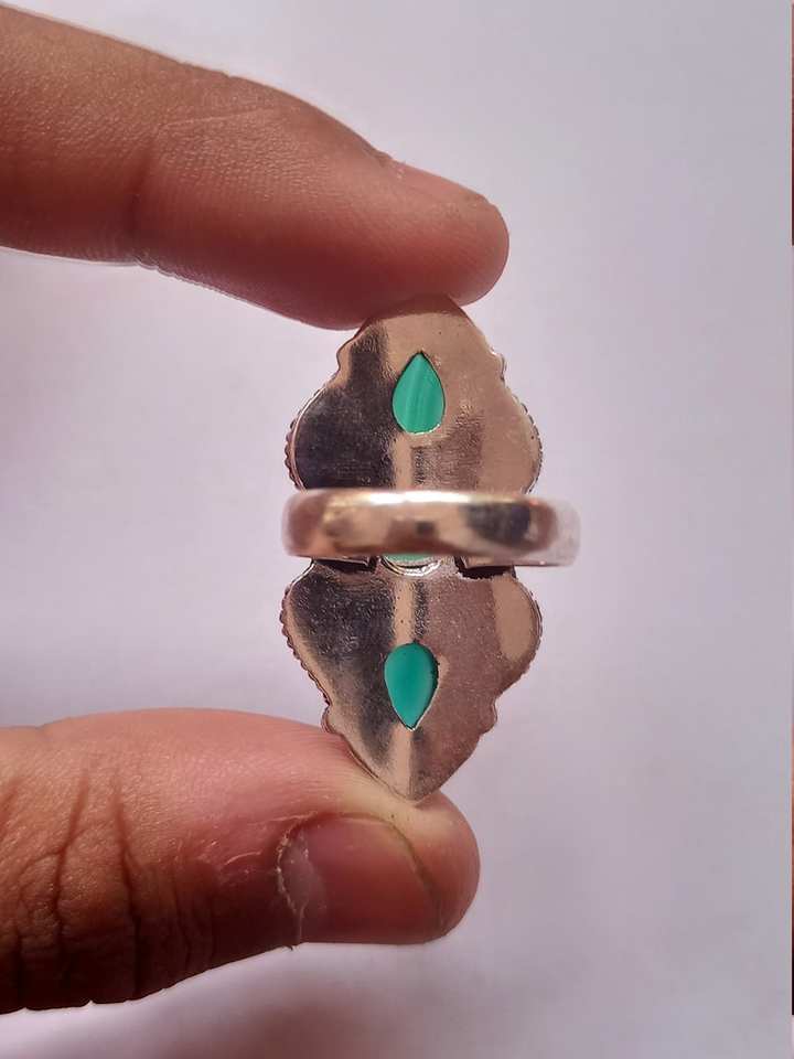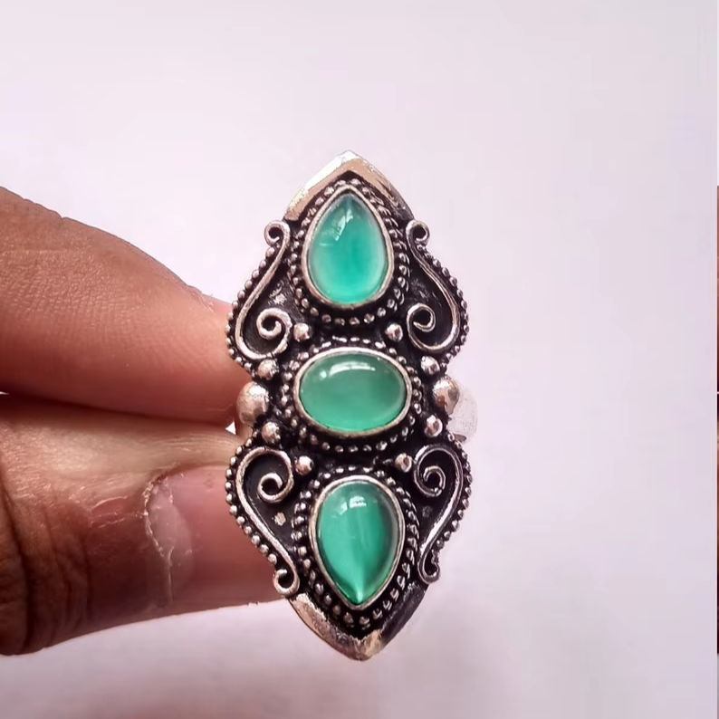 Hermoso anillo de plata esterlina de ónix verde llamativo y diseño delicado