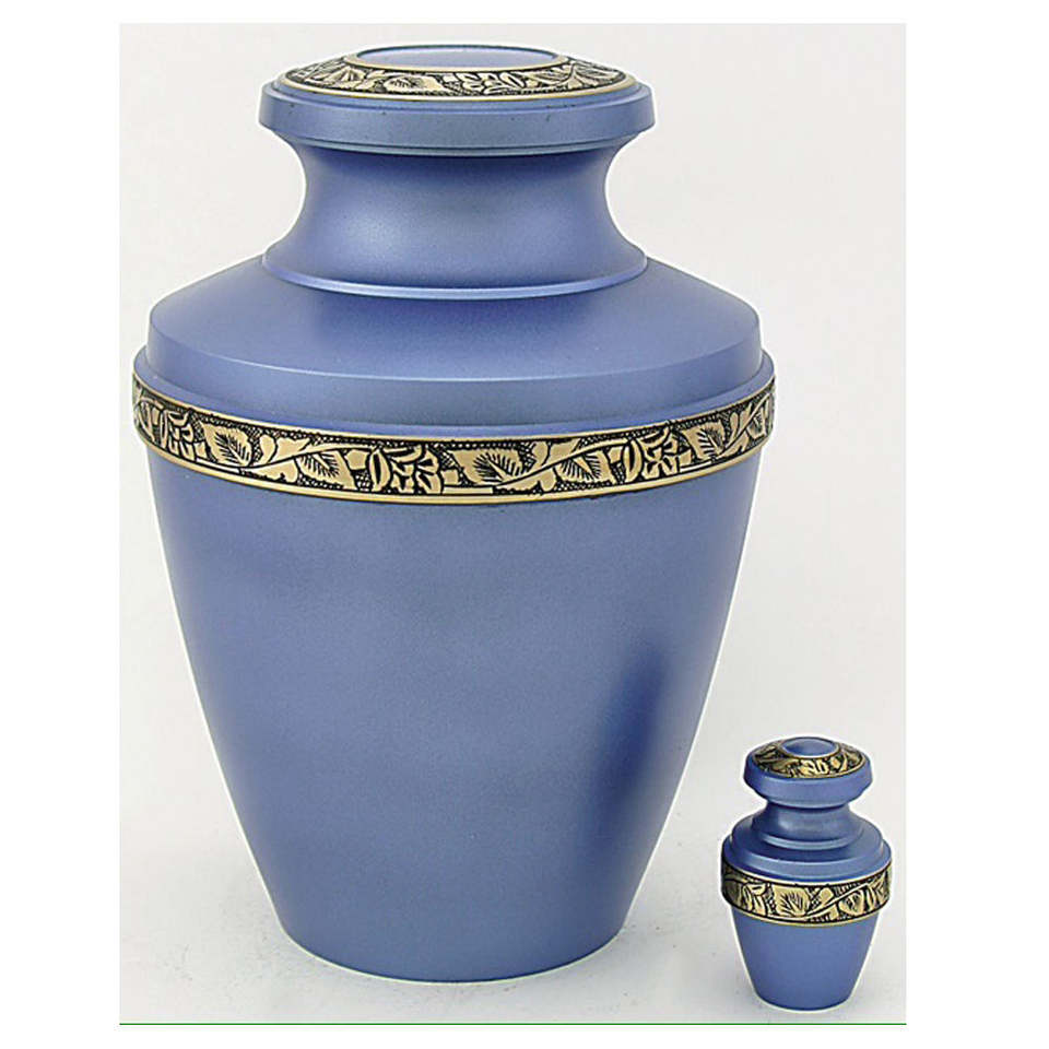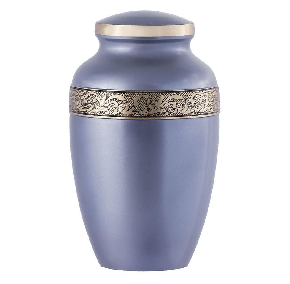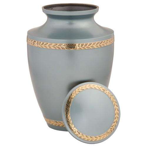 Urna Funeraria de Metal (Latón/Aluminio) Color Gris con Banda Plateada para Cenizas Humanas de Adultos