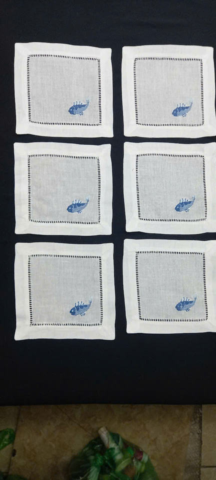 Hermosa tela bordada a mano de chenilla para posavasos de camarones y peces tejida para restaurantes y hoteles que aceptan pedidos a granel