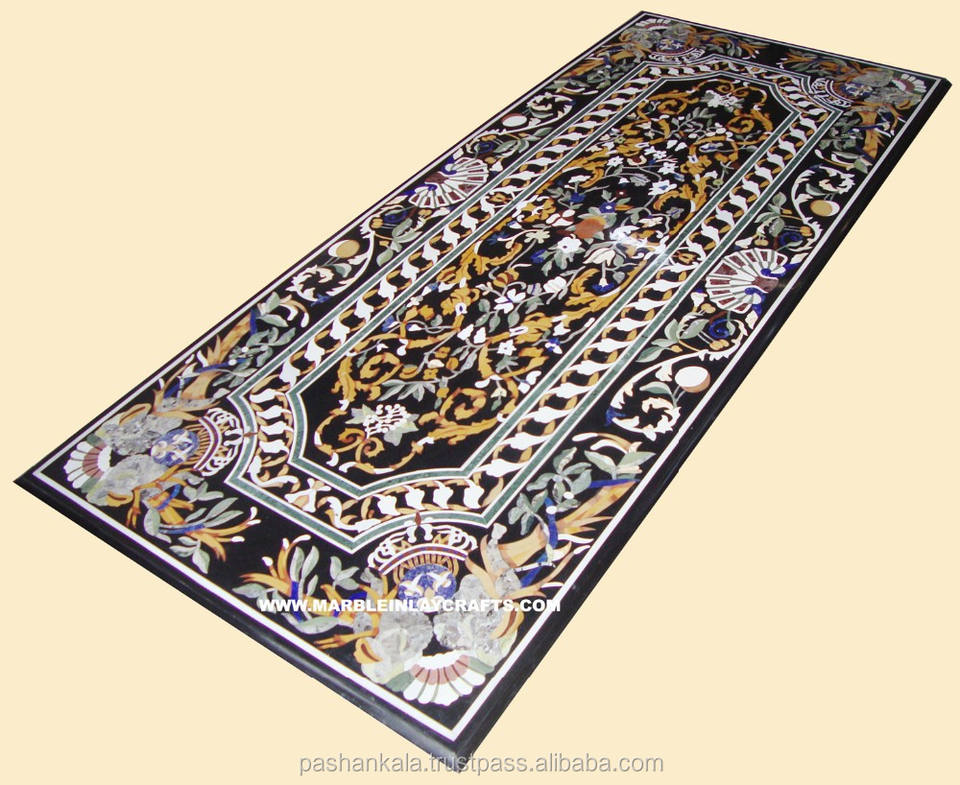 Hermosas Mesas Rectangulares de Mármol Negro Incrustado Hechas a Mano