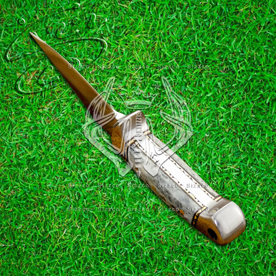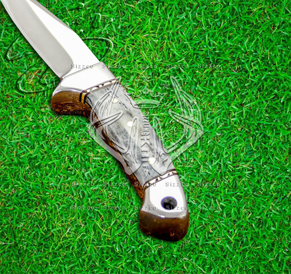 Hermoso acero D2 hecho a mano, cuchillo de caza de hoja fija para acampar con Funda de cuero, mango de hueso de color, regalo para él