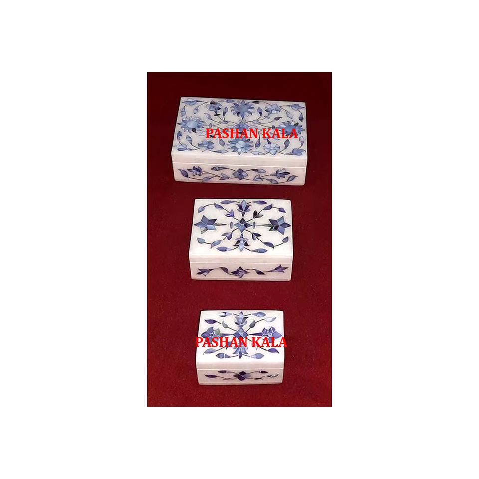 Hermoso mármol blanco puro hecho a mano en azul madre de perla flor incrustaciones joyería Cajas de Regalo para negocios y artículos de regalo de boda
