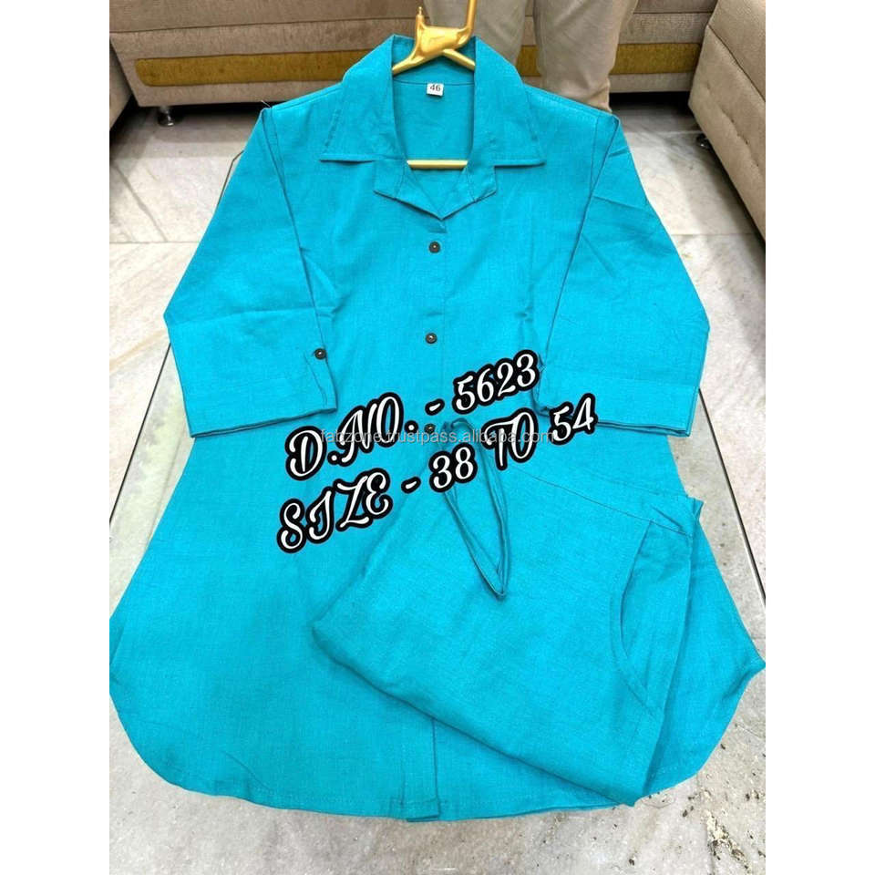 Beautiful Heavy Cotton Slub / Cotton Flex (खादी) Best Quality Fabric Cordset ( Short Length Shirt - 29”) With Wooden Buttons & L