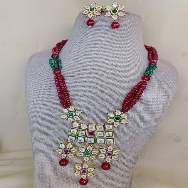 Hermoso conjunto de collar Kundan chapado en oro de tres capas de alta calidad, pendientes para mujer, joyería de diseñador para ropa de boda