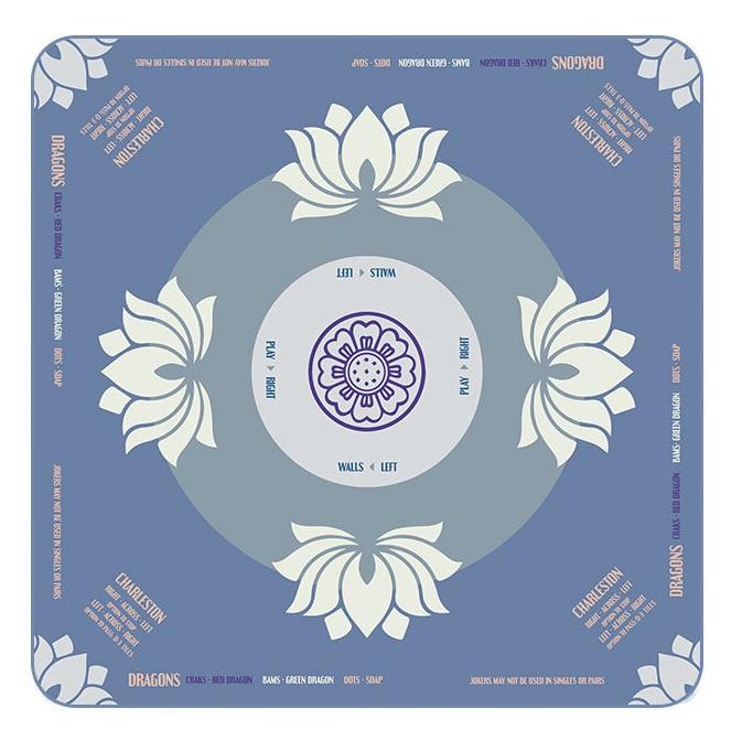 Hermosa Alfombra de Mahjong de Neopreno con Estampado de Flores Moradas y Azules, Venta al por Mayor, Pedidos Personalizados, Directo de Fábrica
