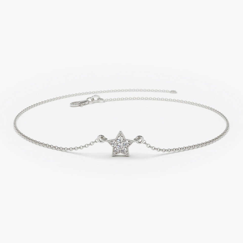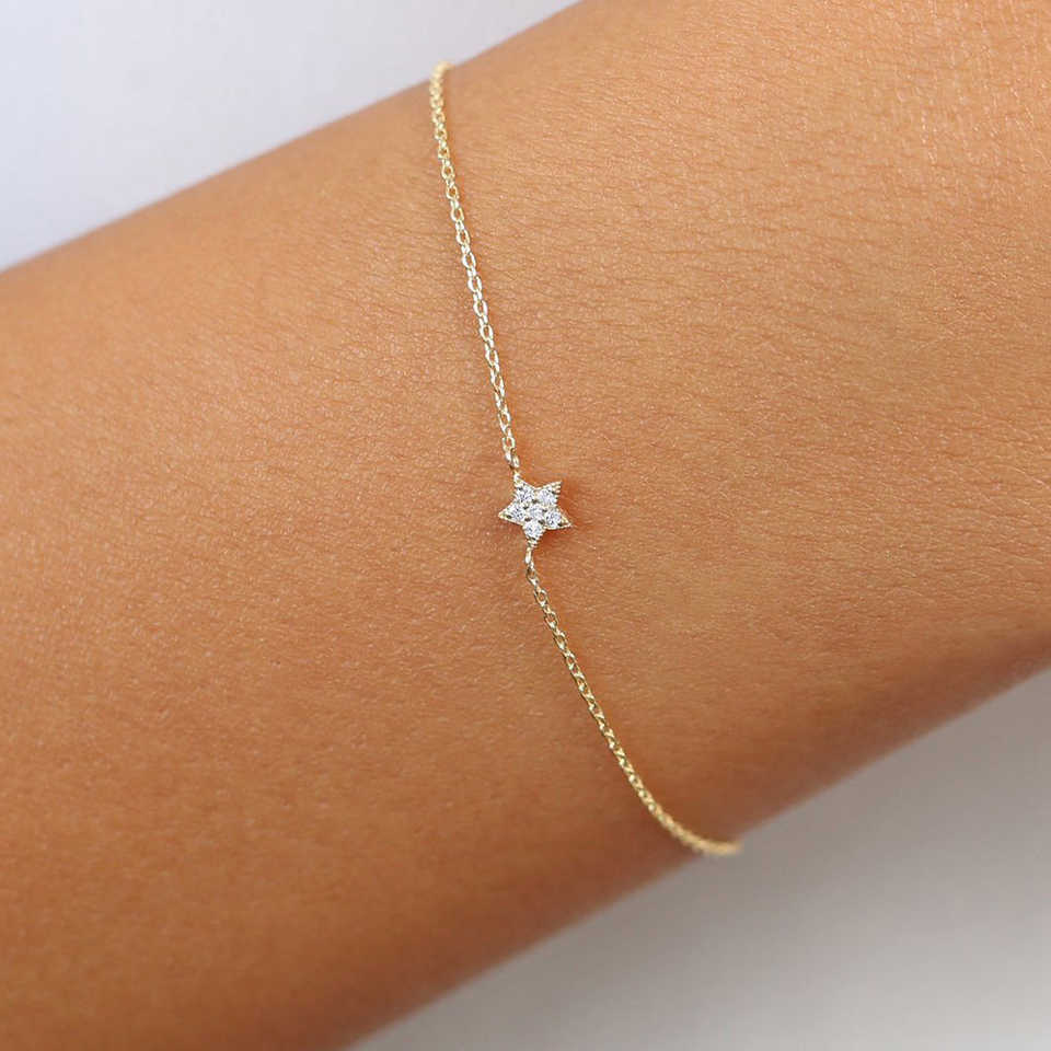 Hermosa Pulsera de Plata de Ley 925 con Baño de Oro, Diseño Estilo Rajasthani Indio, con Dijes de Estrella y Moissanita