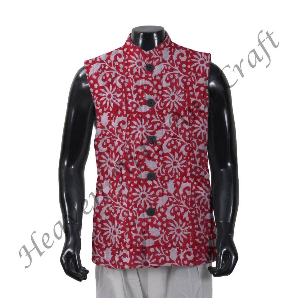Hermosa Jaipur Sanganer Hand Block Impreso Chaquetas acolchadas para hombres Hecho a mano de Jaipur Tela de algodón con bolsillo