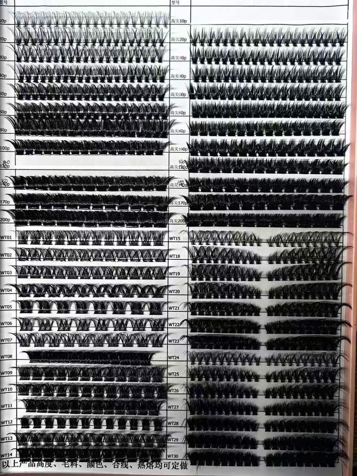 Pestañas Postizas Hechas a Mano Beautiful Kiss, Extensiones de Pestañas en Racimo, 14 Filas, 0.07mm de Grosor, Pelo Sintético, Segmentos Individuales para D