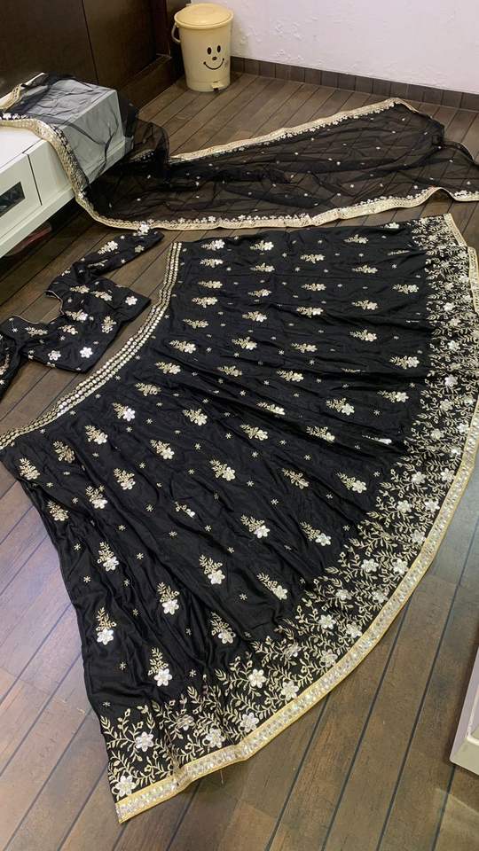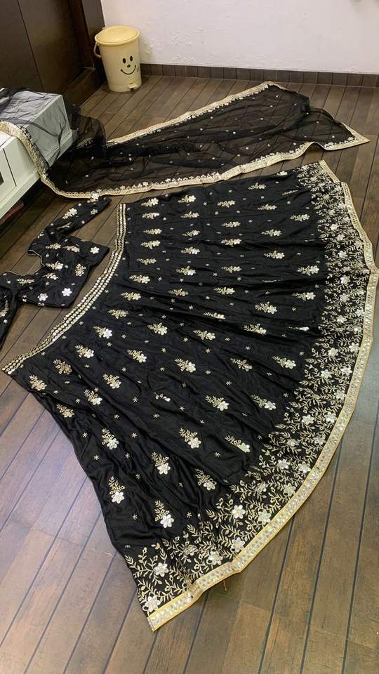 Tipo de:Camiseta de seda Zari y papel espejo trabajo Lehenga Choli