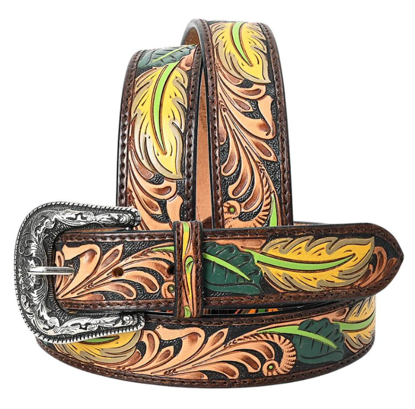 Cinturón de Cuero Genuino para Hombre, Estilo Vintage, Recto, con Grabado Floral Indio, Herraje de Cuero Occidental, Aleación