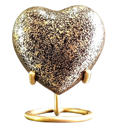 Hermoso Recuerdo de Mármol Azul Esmaltado con Corazón Grabado en Dorado con Base de Latón para Cenizas de Cremación