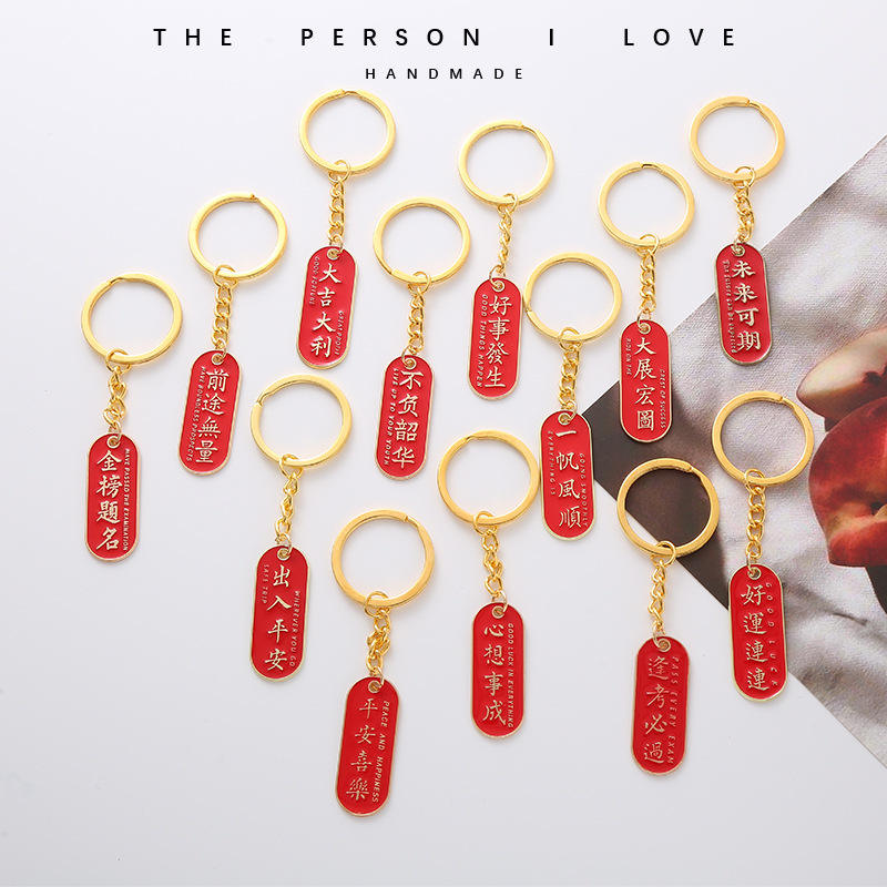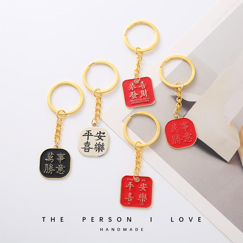 Llavero de Metal con Diseño de Texto, Estilo Nacional, para Bolsos de Hombre y Mujer, Colgante para Estudiantes, Pequeño Regalo