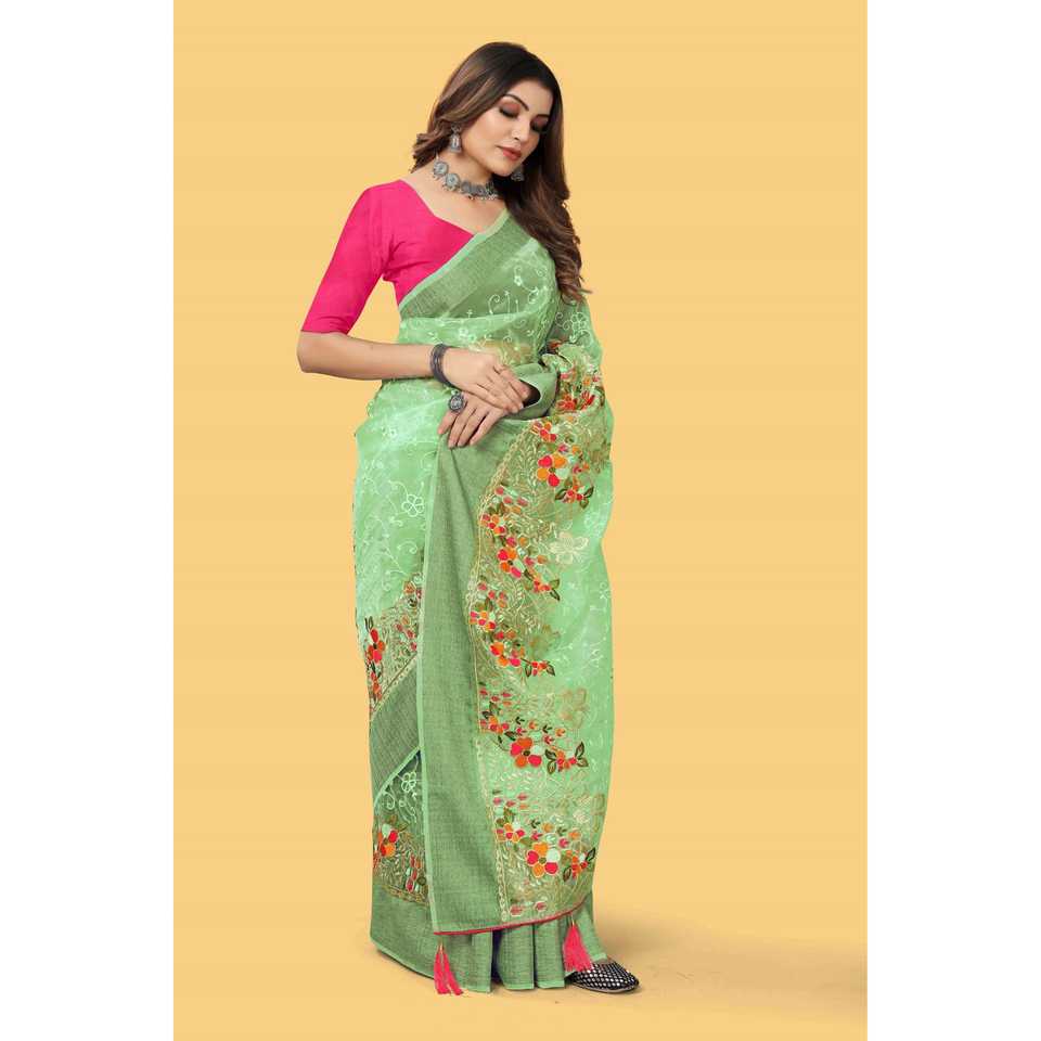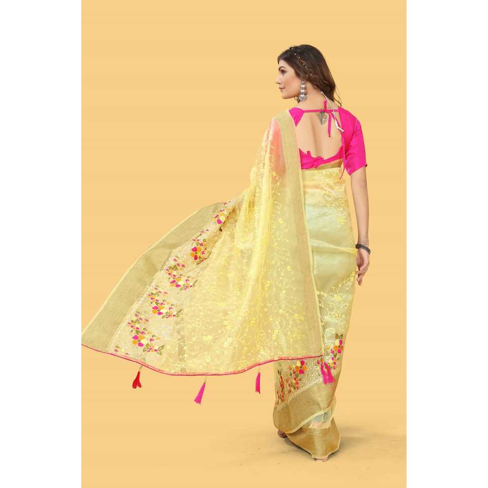 Hermoso hilo multicolor y zari-dori trabajo Sari elegante vestido de fiesta de noche