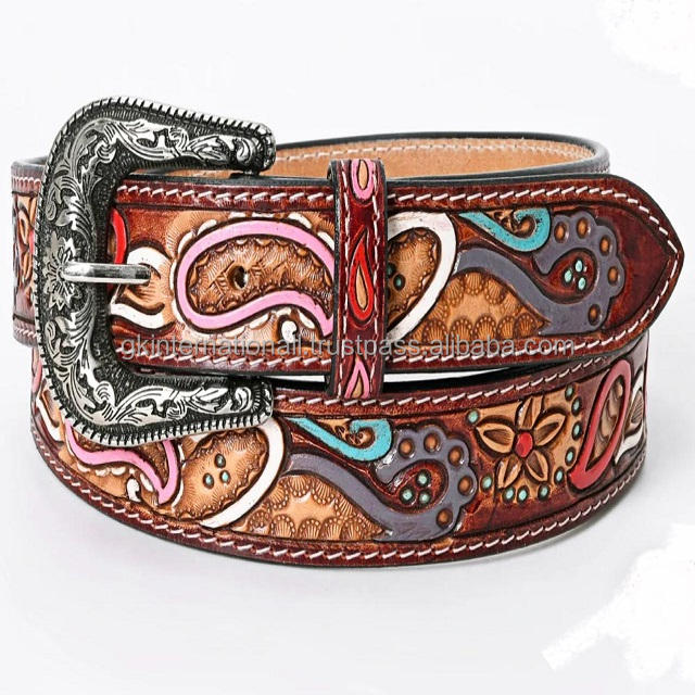 Hermoso Cinturón de Cuero Indio Genuino Marrón Multicolor Hecho a Mano para Hombre y Mujer, Cinturón de Cuero Occidental Personalizado con Herramientas