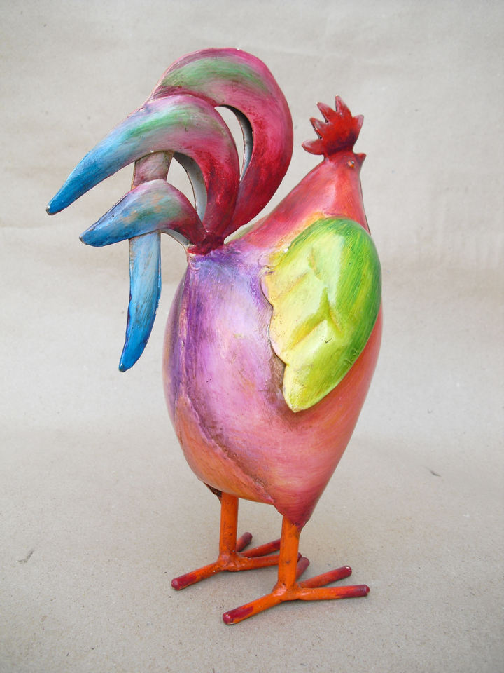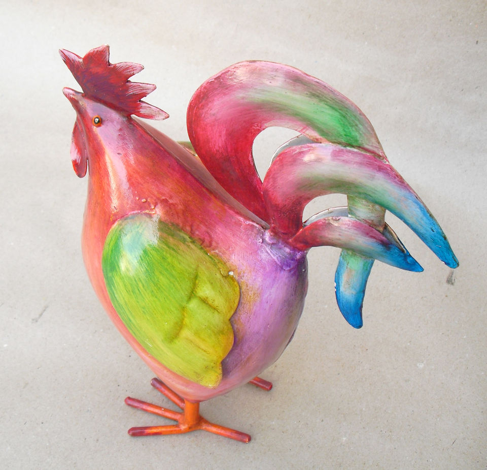 Hermosa Escultura de Gallo Multicolor de Hierro para Decoración de Interiores/Exteriores y Jardín