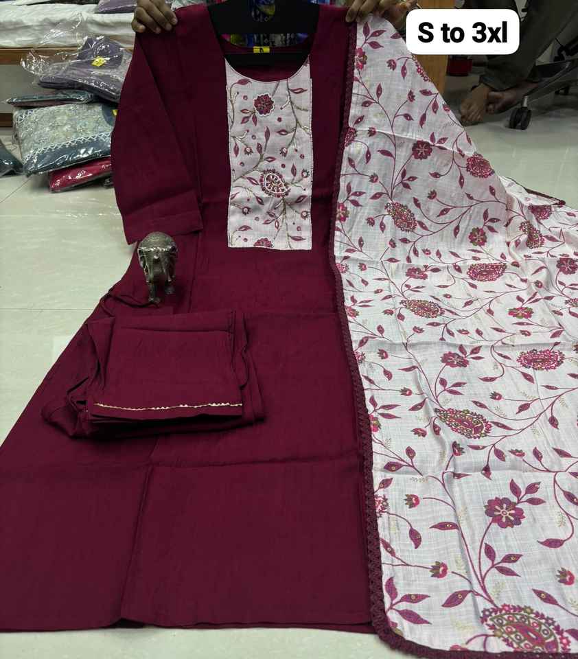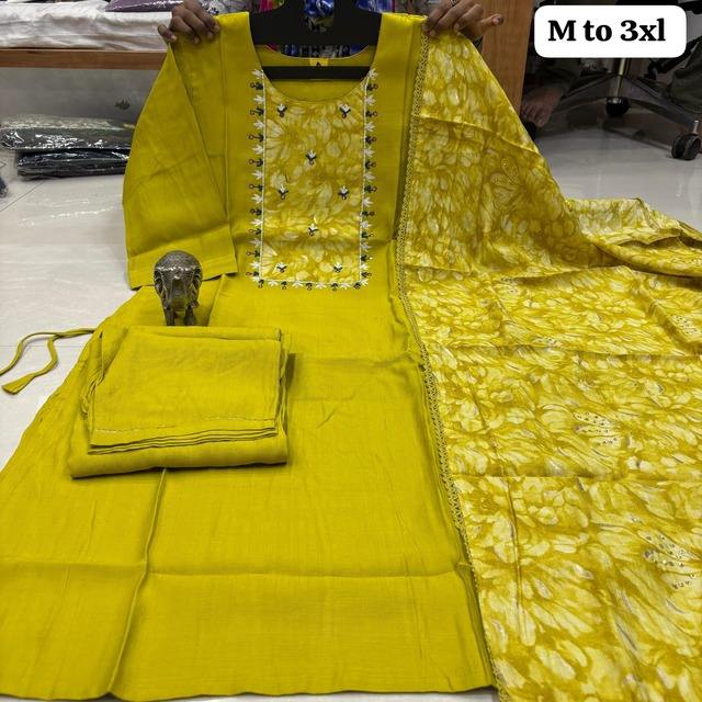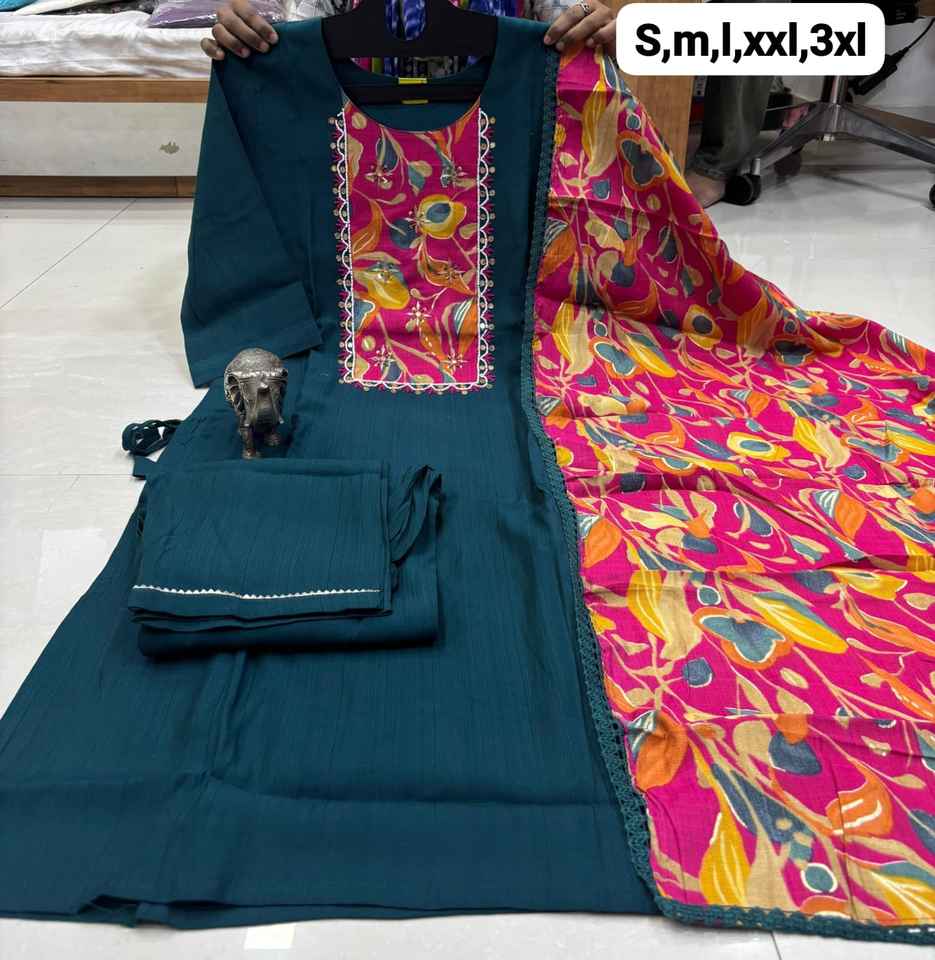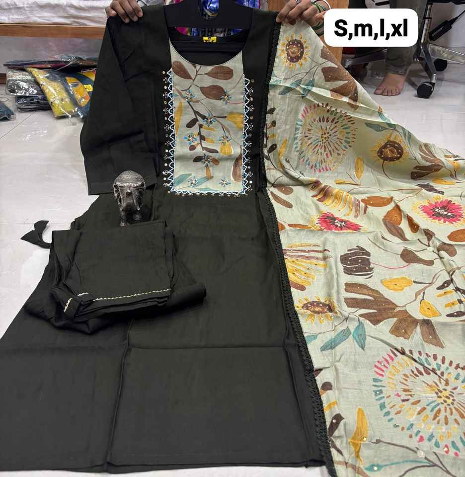 Muselina Hermosa Con Imprimir Mano Trabajo Kurti Pant Y Dupatta