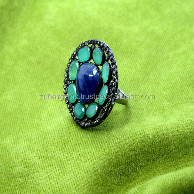 Azul zafiro Esmeralda diamantes naturalesPiedra principal