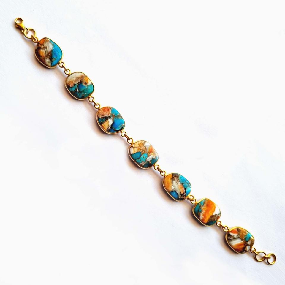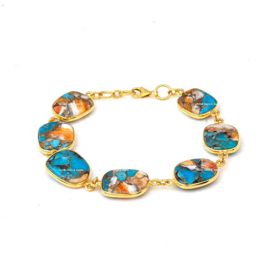 Product Name:Natural Spiny Oyster Copper Turquoise Silver Bracelet