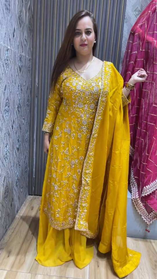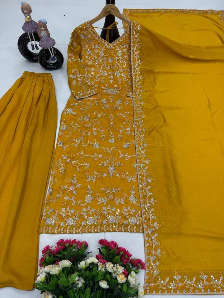 Beautiful Party Wear Designer Top-Bottom y Dupatta con trabajo de secuencia