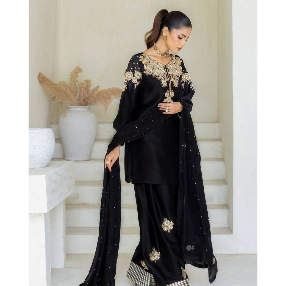 Hermosa ropa de fiesta Top-Bottom y Dupatta Set XL Tamaño Aspecto elegante