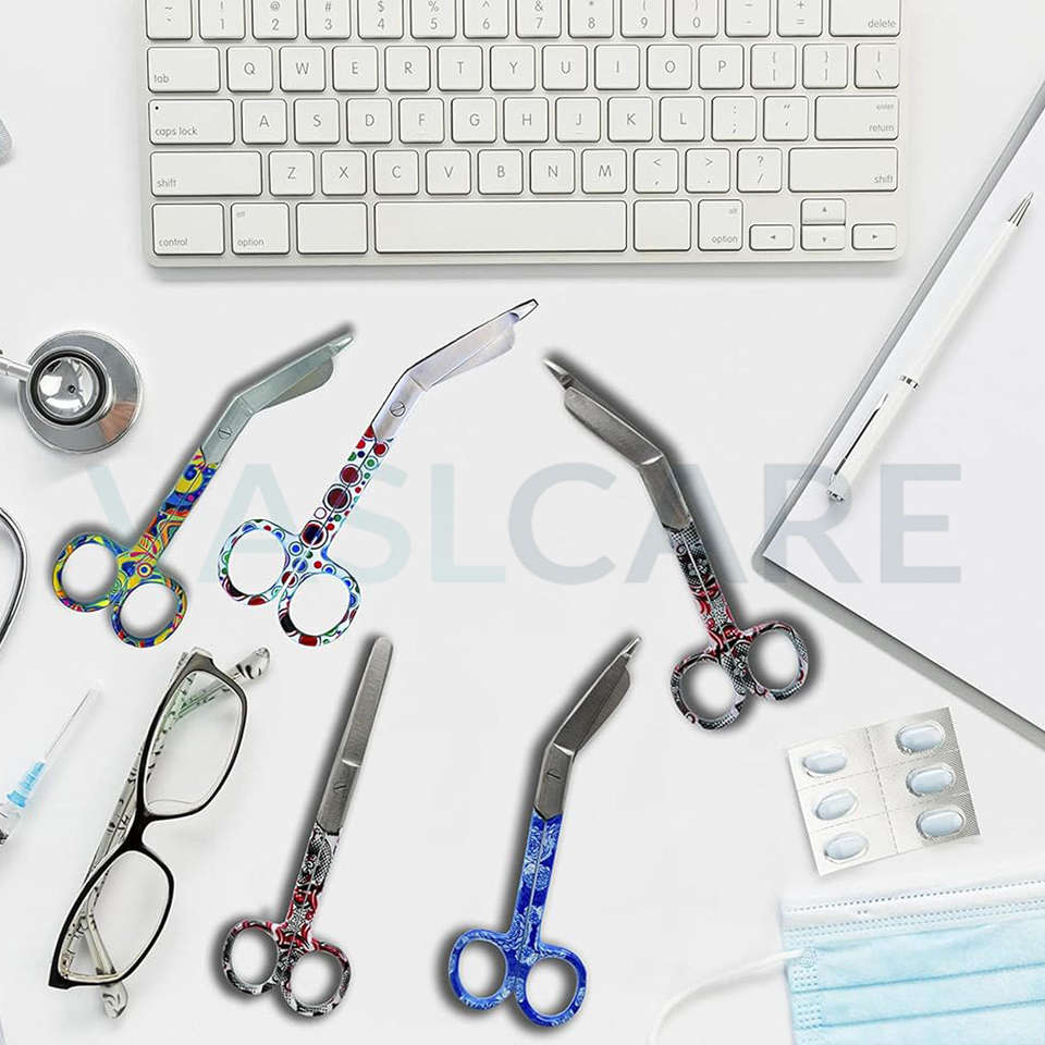 Hermoso diseño de patrón, tijeras de punta roma para enfermera de primeros auxilios, veterinarios, estudiantes, capa eléctrica Manual, vendaje, pinzas de tijera