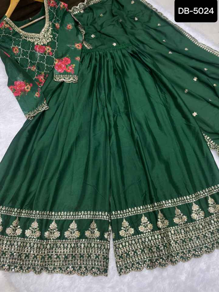Hermosa ropa de fiesta Rosa recta Kurta Sharara y Dupatta Set Partywear bordado paquistaní Salwar Kameez para ropa de mujer