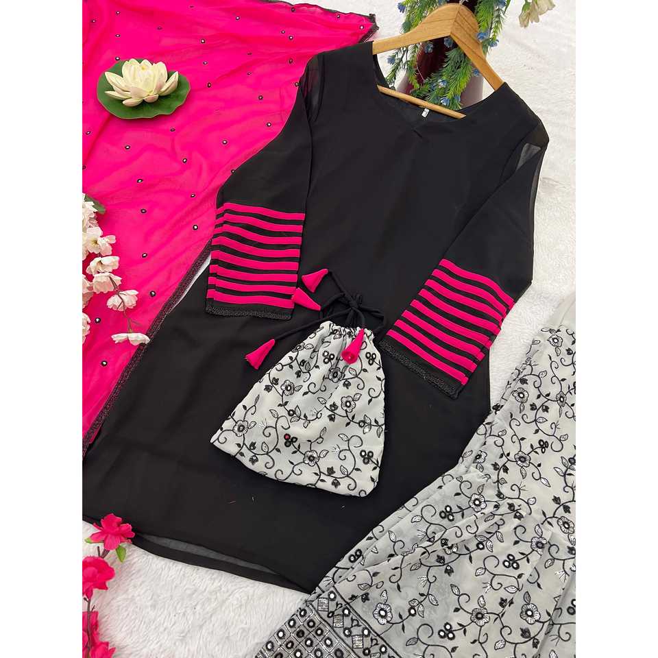 Hermoso Conjunto de Salwar Kameez Elegante con Top y Pantalón de Poliéster y Dupatta Elegante para Fiestas