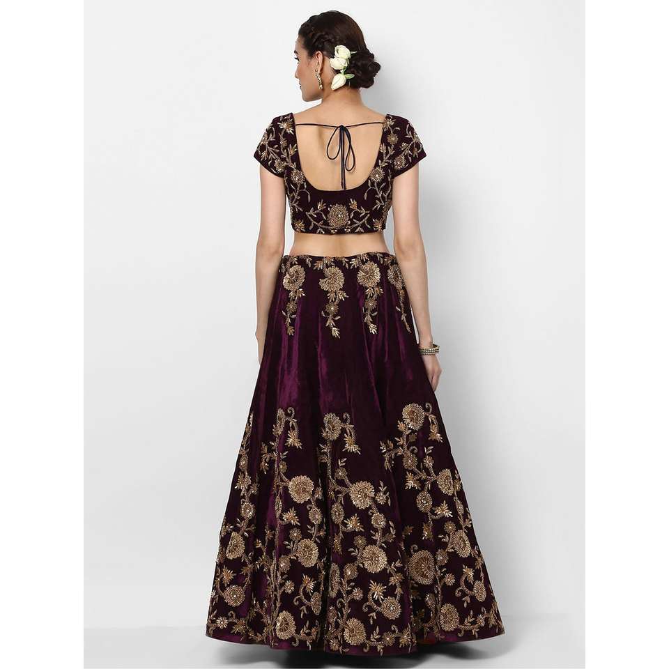 Hermosa ropa de fiesta de color púrpura Diseñador de terciopelo bordado Lehenga Choli