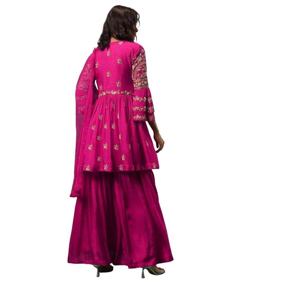 Hermoso Salwar Kameez de Seda Georgette Rosa Rani, Corte Entallado, con Bordado Pesado de Resham y Dupatta, para Bodas y Fiestas
