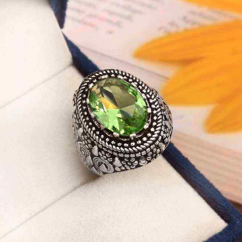 Hermoso anillo de tsavorita natural raro, regalo de joyería de plata de ley 925 para ella