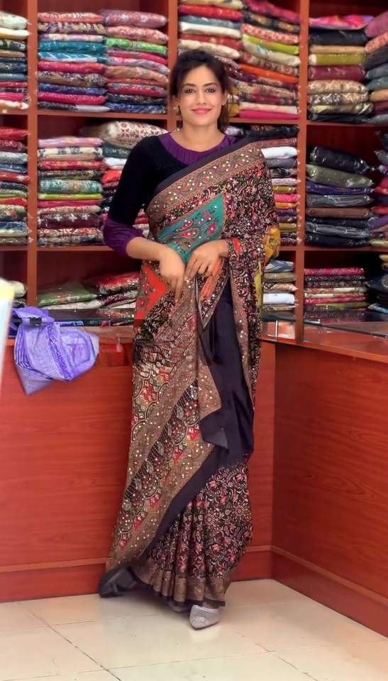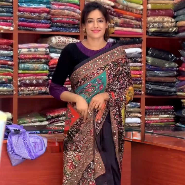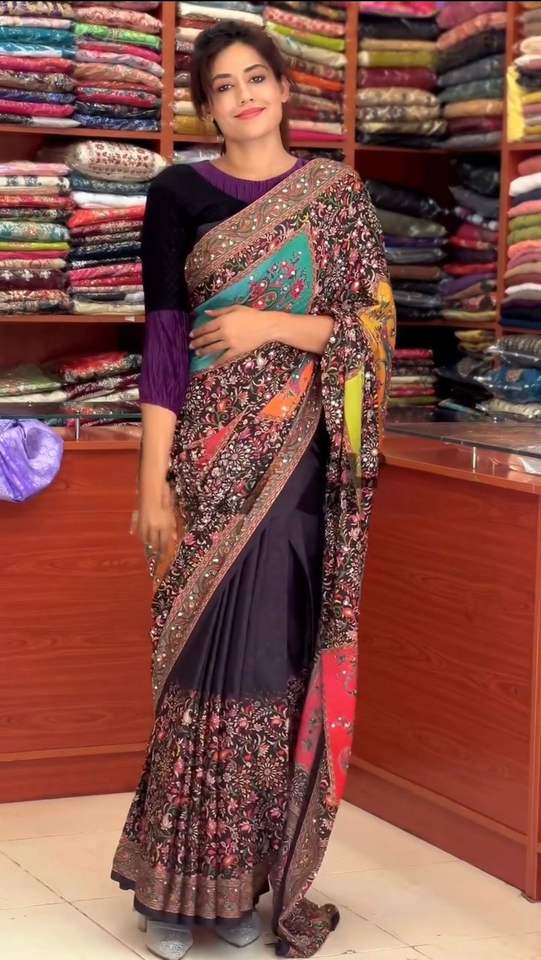 Hermoso Sari Listo para Usar con Borde de Encaje con Lentejuelas para Mujeres Adultas, Ropa de Fiesta y Festiva, Hecho en India