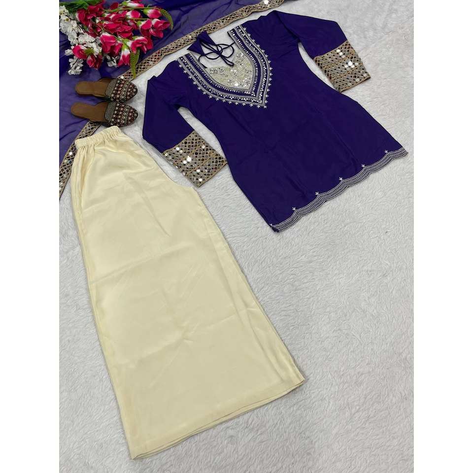 Hermoso Conjunto de Traje de Satén con Bordado a Mano y Espejo, Diseño Original