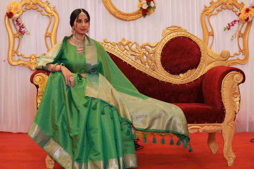 Saree de seda de lino de tejido suave, blusa tejida con Zari, Buti, por encima y rico, zari Pallu con zari, sa India