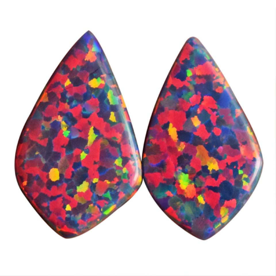 Hermosos Opales de Fuego Azul Verde Rosa Brillantes, Par de 3 CTW, Tamaño de Cabujón 18x11x2 MM, Par de Pendientes, Gema para Joyería