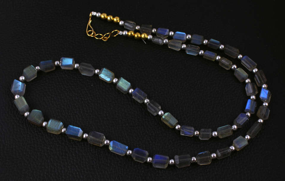 Hermoso collar de hebra, pepitas de Natural labradorita, forma de Fuego Azul, cuentas de piedras preciosas, joyería hecha a mano, venta al por mayor