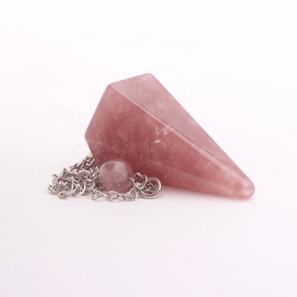 Hermoso Péndulo de Cuarzo Fresa Facetado, Hexagonal, Religioso, Feng Shui, de Lujo, Natural, Coleccionable, al por Mayor