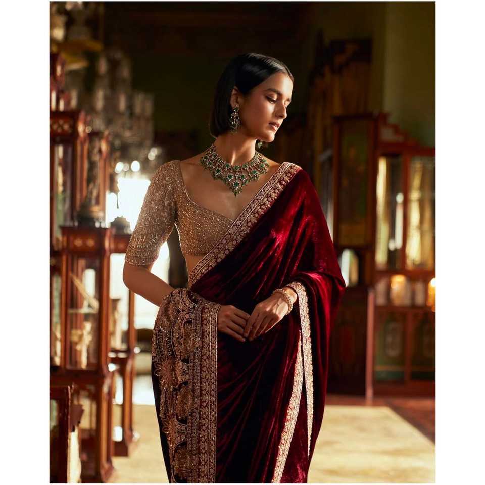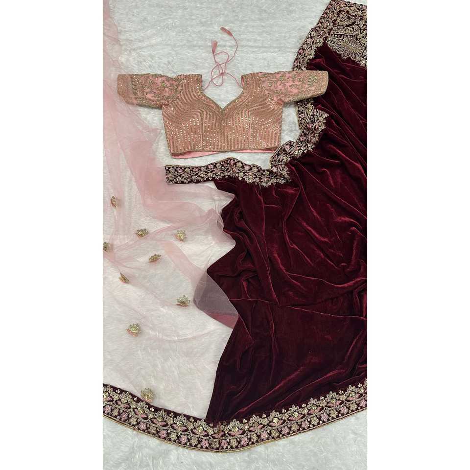 Hermoso Sari con Bordado de Hilo y Dori para Fiestas, Elegante Vestido de Trabajo