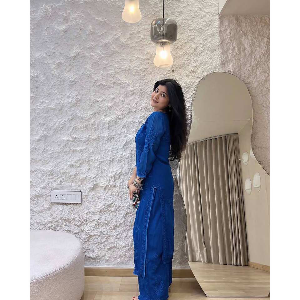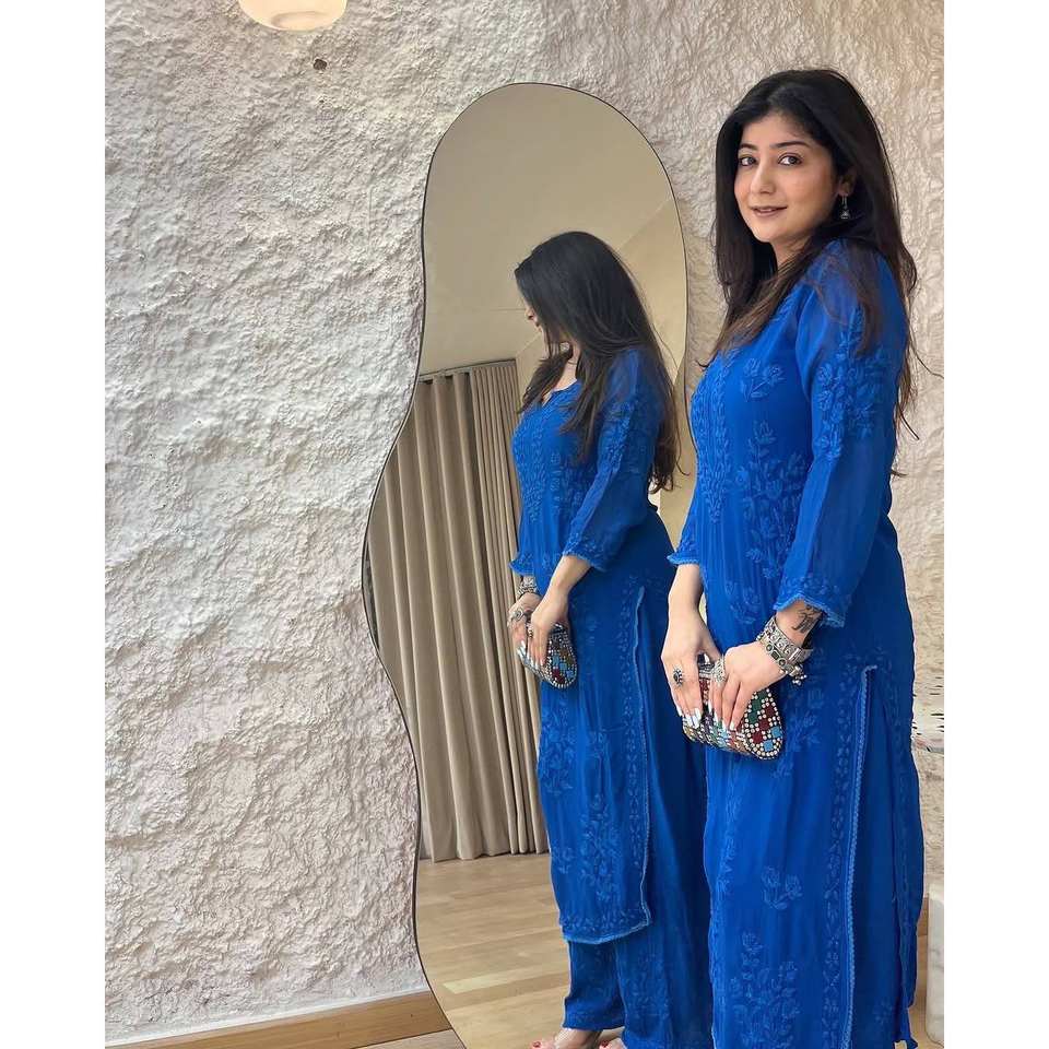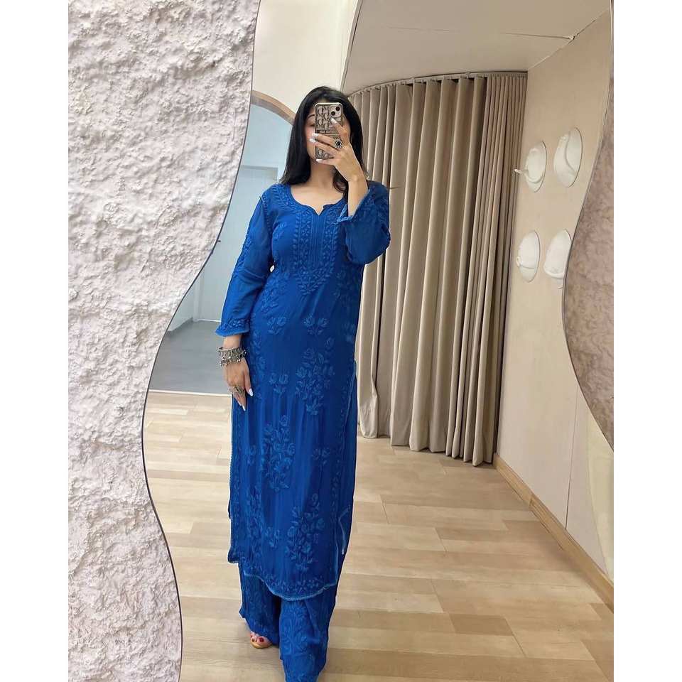 Hermoso conjunto de top y pantalón con bordado de hilo, talla XL