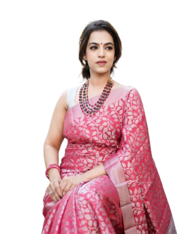 Hermoso Sari de seda india tradicional con pallu rico y trabajo jacquard estirable para fiestas de verano e invierno