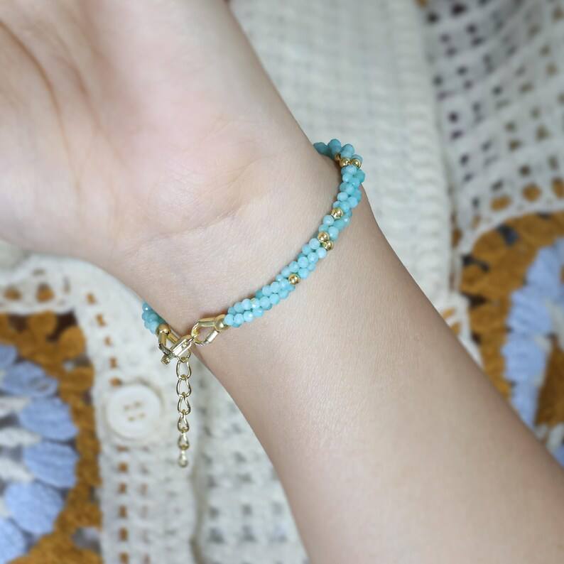 Hermosa Pulsera de Cuentas Facetadas de Turquesa para Mujer, Pulsera Vintage de Turquesa y Oro para Ella