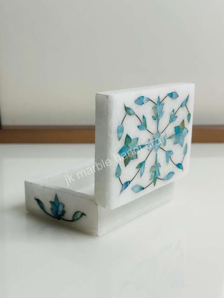 Hermosas cajas de joyería con incrustaciones de mármol blanco azul cielo para decoración del hogar caja con incrustaciones de mármol blanco tamaño 10x7,5