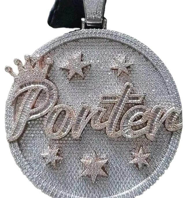 Hermosa forma redonda blanca Moissanite personalizado letra colgante plata esterlina Moissanite Hip Hop colgante