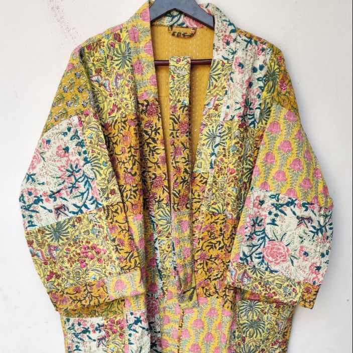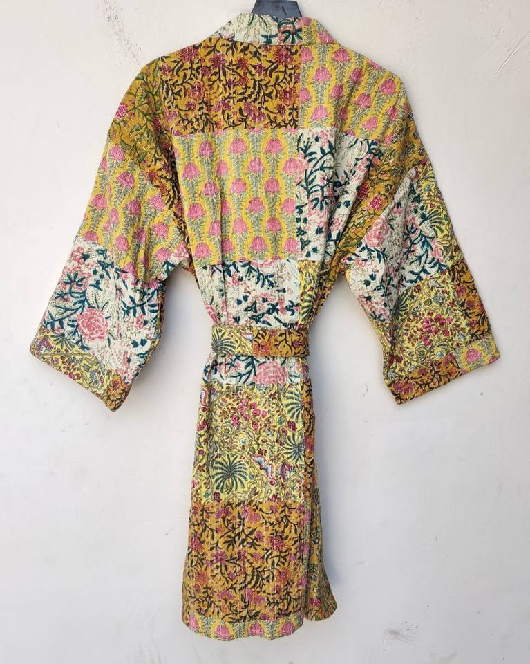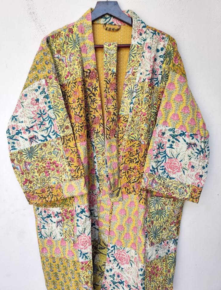 Chaqueta de estilo Kimono multicolor con bordado Floral para invierno, bata acolchada de algodón de retazos hecha a mano
