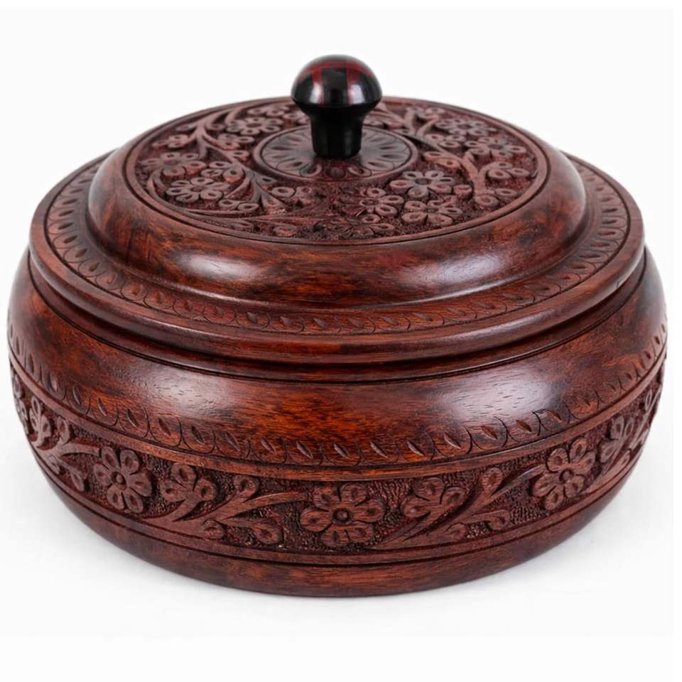 Hermosa caja de madera para chapati, organizador de roti para cocina con tapa y acabado artístico hecho a mano a precios competitivos.